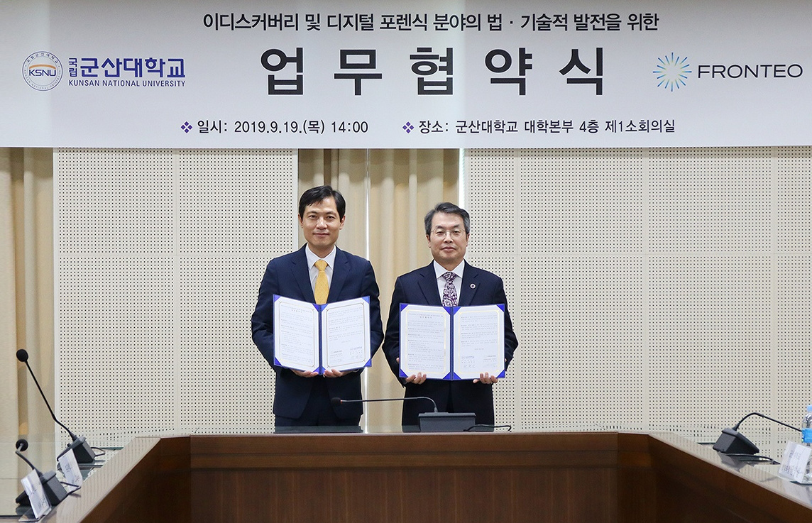 프론테오코리아(FRONTEO Korea, www.fronteokorea.com)가 군산대학교(총장 곽병선)와 이디스커버리(eDiscovery) 및 디지털 포렌식 분야의 법∙기술적